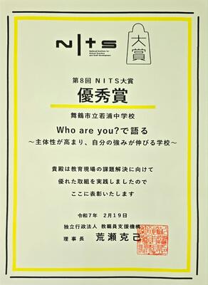 独立行政法人教職員支援機構(NITS・ニッツ)が主催する「第8回NITS大賞」で、