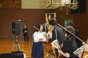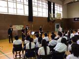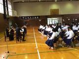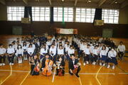 若浦中学校に、ヴァイオリンの泉原隆志(いずはらたかし)さん、豊永歩(とみながあゆみ)さん、ヴィオラの一樂もゆる(いちらくもゆる)さん、チェロの一樂恒(いちらくひさし)さんがお越しくださり、情熱大陸やジュビター、若浦中学校校歌等を演奏してくださいました。